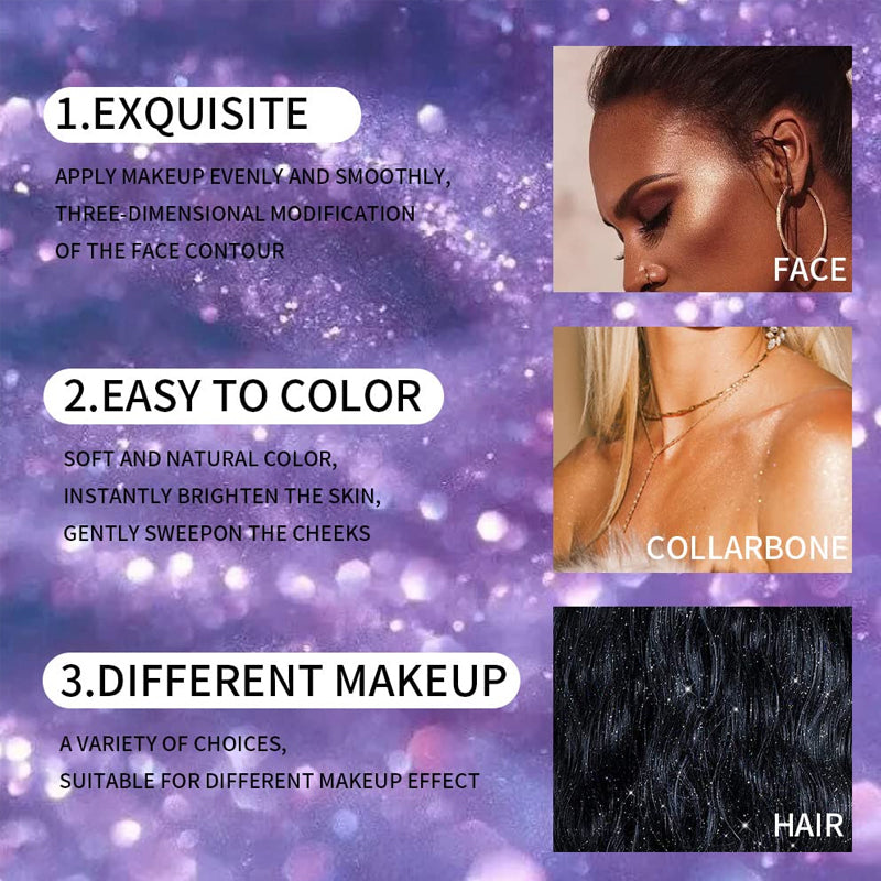 ✨[Effet longue durée] La poudre scintillante est naturelle et délicate, avec une bonne adsorption. Après application, elle adhère bien à la peau et couvre les imperfections. L'effet low light dure longtemps et la brillance intense met en valeur votre beauté.